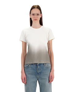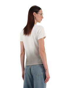 Beyaz Pamuklu Gri Spray Baskılı Fit Tshirt